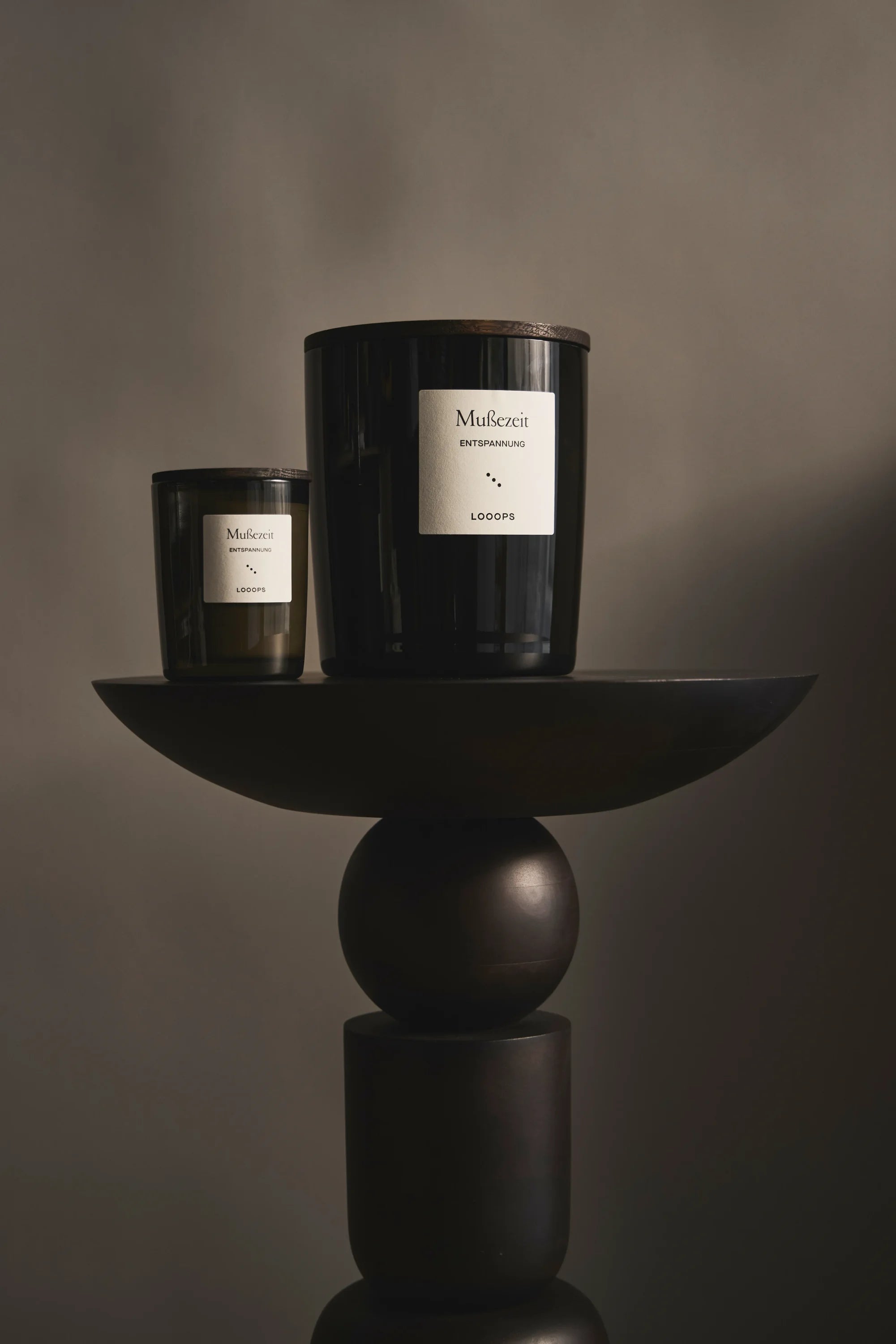 Jede Kerze hat einen Deckel aus gebeiztem Eichenholz. Er schützt vor Staub – und wird bei Bedarf zum Untersetzer.
