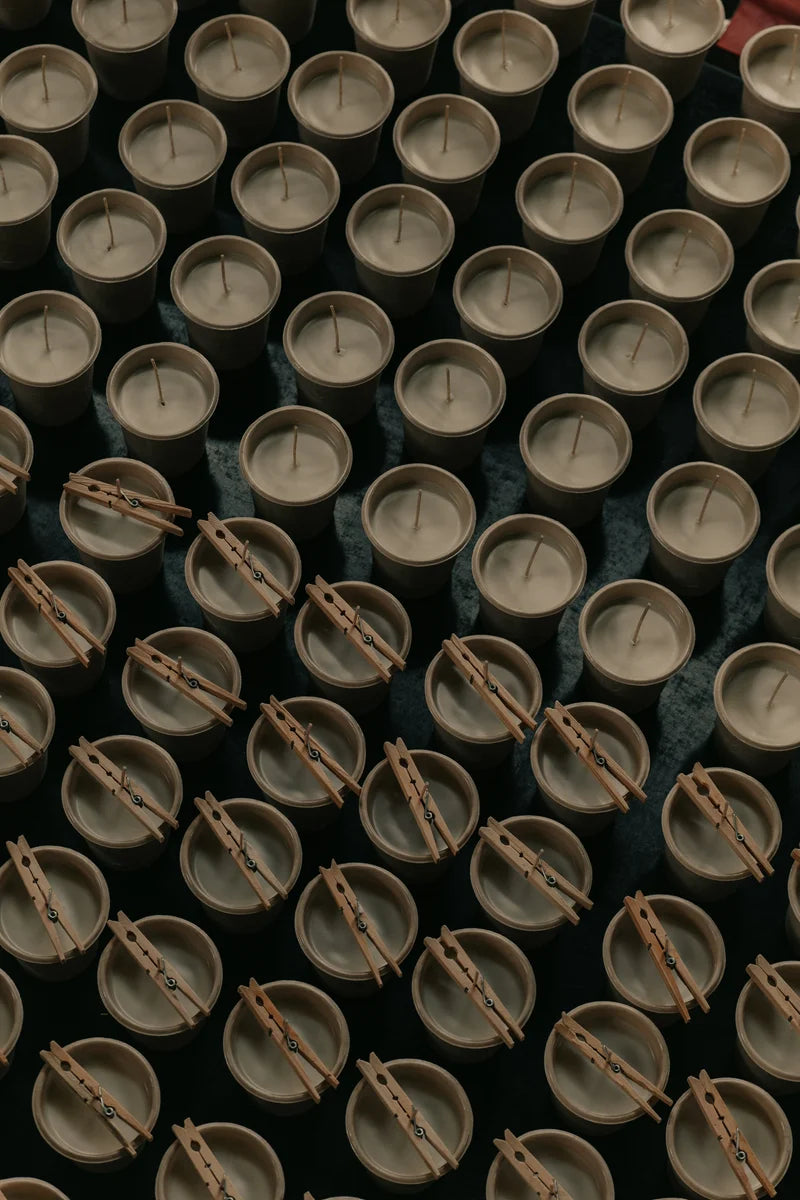Für unsere Kerzen kreieren wir eine eigene Mischung aus pflanzlichen Wachsen. Sie sorgt für gleichmäßiges Abbrennen und eine feine Duftentfaltung. Auf Paraffin und Palmwachs verzichten wir – aus Verantwortung gegenüber Umwelt und Gesundheit.